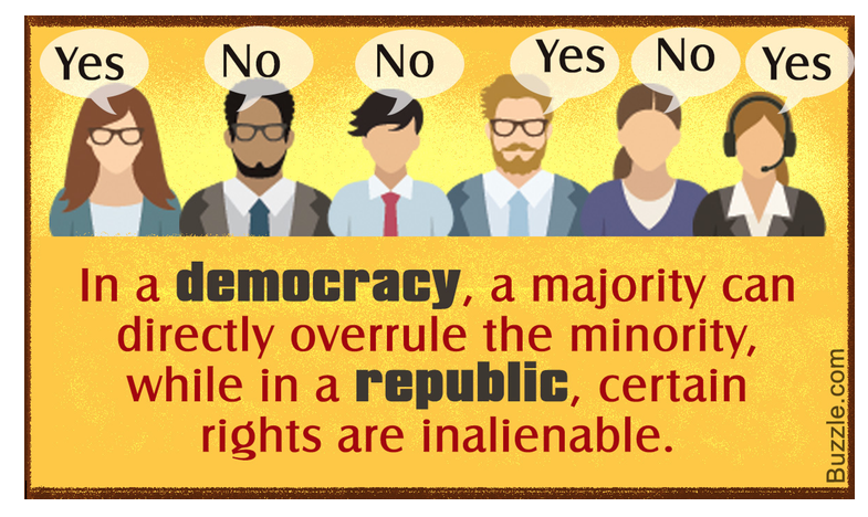 A Republic, however, is based upon the rule of law, generally based in a constitution, and the elected leaders and the public may not override the inalienable rights set forth in the constitution.