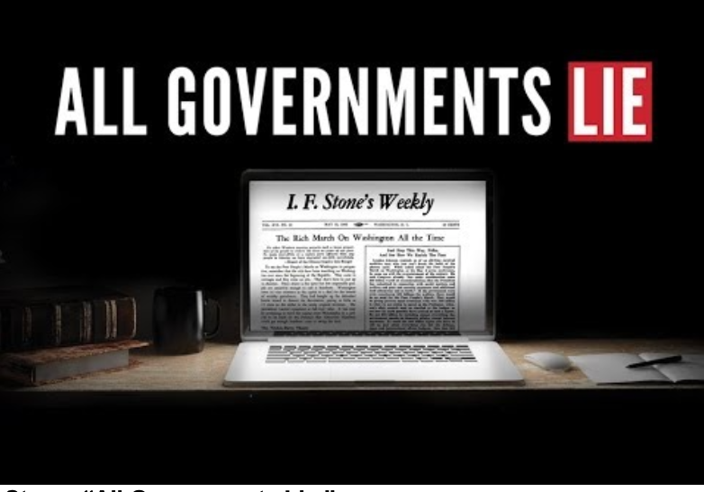 Sometimes, though, the lies are far more elaborate, and a new documentary about I.F. Stone, “All Government Lie: Truth, Deception, and the Spirit of I.F. Stone,” highlights many such lies that investigative journalists disproved, such as: