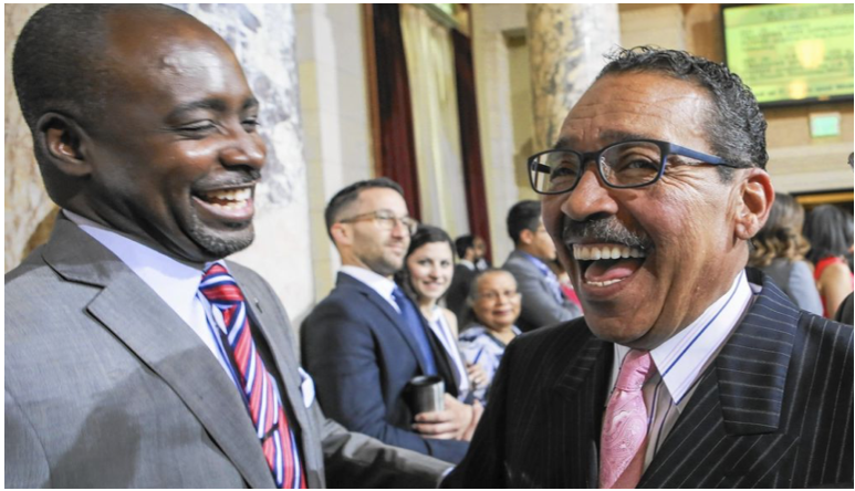 Yesterday, however, Council President Wesson and Councilmember Harris-Dawson (photo above) voted in the Rules Committee to only lower the aggregate threshold from $25,000 to $20,000, meaning that the whole package that Council voted to codify will require nearly twice as many max qualifying contributions (174) to qualify as current law. They forwarded Councilmember Bonin's amendment to the Ethics Commission for its recommendations, but when the Ethics Commission originally recommended changes to the matching fund program in 2015, they never even got a Council vote.