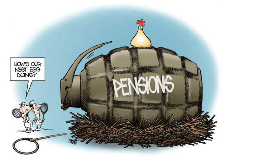 Worst case, a big recession or a huge stock market decline could combine with the California Rule to create an epic fiscal calamity. With pension funds falling short, cash-strapped governments would have to put even more money into shoring up retirement benefits as required by the California Rule, leaving little money for anything else. Hundreds of schools would close, local governments would go bankrupt, and new taxes and budget cuts to cover funding gaps would further undermine the economy. The public could erupt in fury at pensions and even pensioners, and some governments might dare to abandon payments to pensions funds, putting the public retirement system at risk.