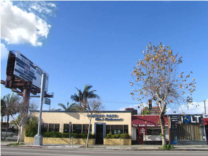 Low rise buildings on Pico Boulevard, one of LA’s many long transit corridors that could instantly sprout five story apartment buildings.