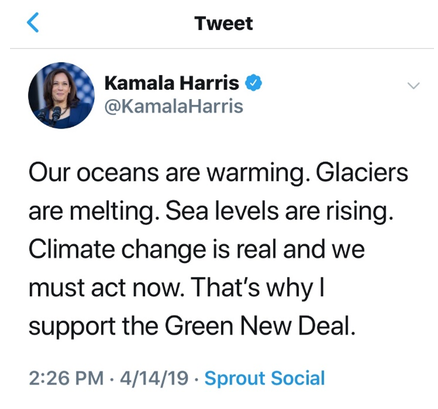 Kamala the Delusional: California Senator and POTUS candidate Kamala Harris seems not only desperate but delusional. The lawmaker – who has passed exactly zero laws in the Senate – recently Tweeted that she supports the Green New Deal.
