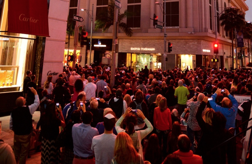 I found myself wondering that on a recent Saturday afternoon as I contemplated attending a block party in my San Gabriel Valley neighborhood. It would be the first such party on our street since we bought a home there in 2011. I had had nothing to do with preparations—I’d been traveling a lot—and I wasn’t looking forward to it. (Photo above: Attendees of a 2014 Beverly Hills block party watch fireworks from Rodeo Drive. Courtesy of Dan Steinberg/Associated Press.)