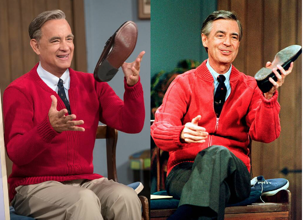 (Photos above: Tom Hanks, left and Fred Rogers and a beautiful day in the neighborhood.)