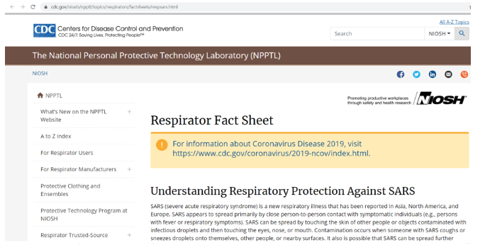 More detailed respirator information has been published by NIOSH, CDC and by the Occupational Safety and Health Administration external icon (OSHA).