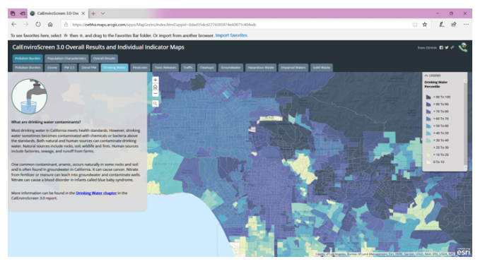 This link to CalEnviroScreen’s website allows you to look at Drinking Water Quality based upon census tracts.