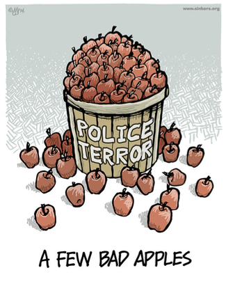 - The bad apple claim. Repeated racist police practices supposedly result from a handful of prejudiced cops – the few bad apples. They violently target local Black residents, smearing the reputation of the overwhelming number of good cops. Missing from this bad apple explanation is the lattice of racist laws, arrests, prosecutions, convictions, sentencing, imprisonment, and parole and probation. As carefully documented in Michelle Alexander’s best-selling book, The New Jim Crow: Mass Incarceration in the Age of Colorblindness, systemic racism permeates the entire criminal justice system.