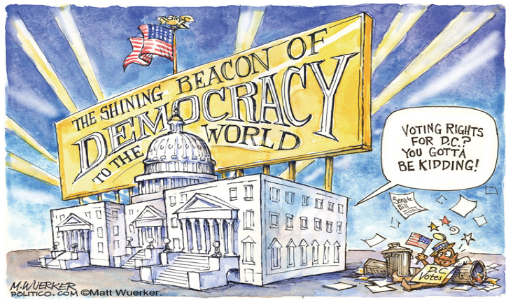 While it is certainly worthwhile to eliminate voter suppression, remove big money from campaigns, and restrict lobbyists, let’s remember that democracy is much more than elections. It also involves freedom of expression and association, due process, and habeas corpus, as well as the other freedoms that President Franklin Roosevelt proposed 76 years ago.