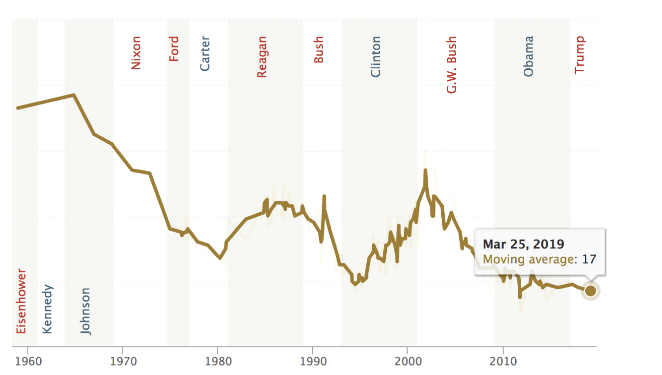 Trust in the US political system declined from about 75 percent to 17 percent over past the 60 years, from the Eisenhower-Kennedy to the Obama-Trump eras