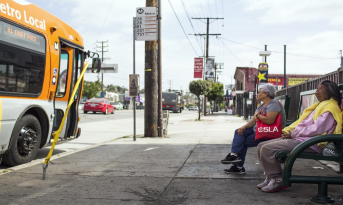 At any uncovered bus shelter, and particularly along this stretch of Santa Monica Boulevard in West Los Angeles in CD5 -- particularly at the bus stops at the intersection of Sepulveda and Santa Monica Boulevards -- I have witnessed senior citizens standing in the rain, the cold, the wind, the beating sun, while waiting for a bus.