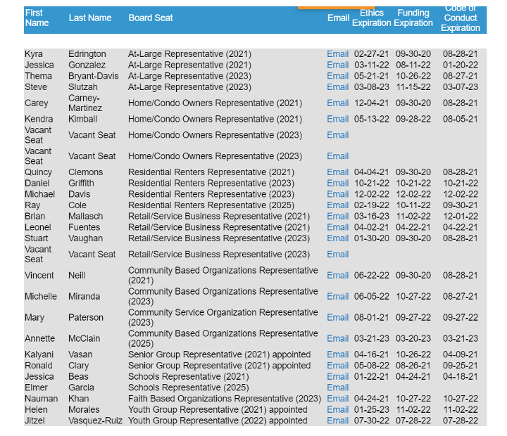 This is the CPNC roster from the EmpowerLA website for the Canoga Park Neighborhood Council on March 23, 2021: