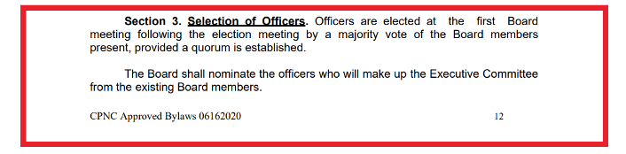 I believe that it was not made clear to the EmpowerLA staff that the CPNC Board Secretary had not run for another term. And I do not think it was made clear to the EmpowerLA staff that the Treasurer’s 2021 term was up, and that she had successfully run unchallenged, and therefore she was being reseated until 2025.