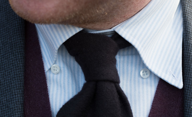 For one thing, Mr. Perez was wearing a necktie, but both of Mr. Perez's collar buttons had come undone.