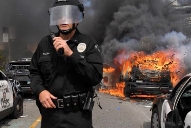 Even prior to the deployment of LAPD officers many protesters were already setting fires, vandalizing, and looting private businesses.