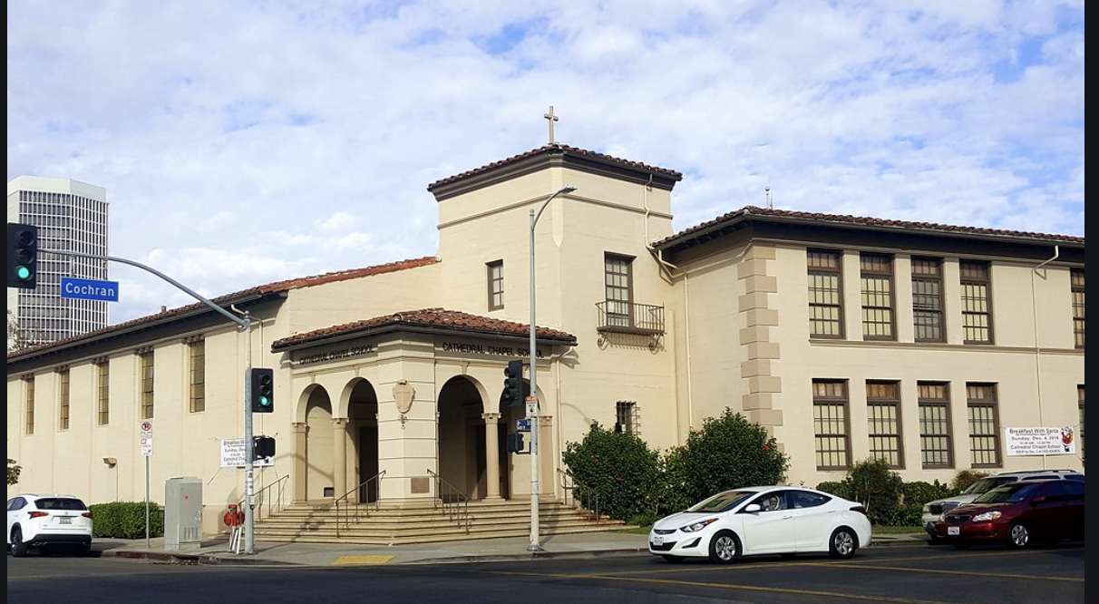 Raman must convince the Archdiocese of Los Angeles’ Cathedral Chapel School, (photo above) directly across the street from the proposed homeless housing project, that the project will not negatively impact the school.