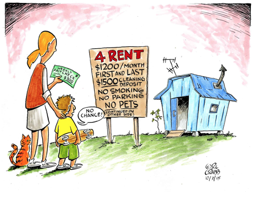 Step 2) Failing to index the 2009 Congressionally adopted $7.25/hour minimum wage to inflation or the price of housing has left millions priced out of housing. The supply is there, but for too many tenants, the rent is too damn high. The cost of existing housing forces them to live in overcrowded conditions, pay more than 30 percent of their income on rent, live in cars, or sleep on sidewalks.