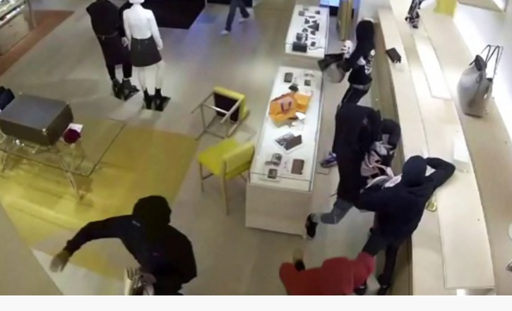 A pack of thieves, armed with sledgehammers, smash their way into a high-end store, grab tens of tens of thousands of dollars of merchandise, and flee with the loot.
