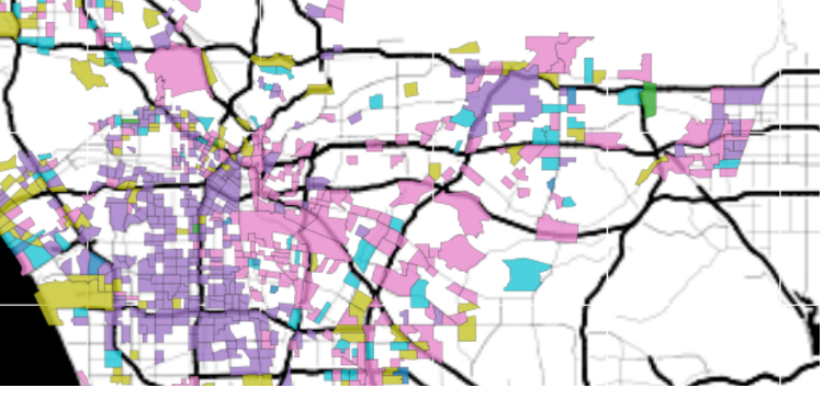 Map of homeless concentrations in the entire Los Angeles region.