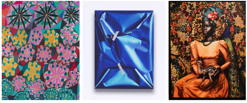 The Art Of _ auction will showcase works by artists (top) William J. O’Brien (left), Yves Klein (center); Shelly Mosman (right); (bottom) Patrick Brown (left); Debora Medici-Guetta (center); and Cherie Harte (right).