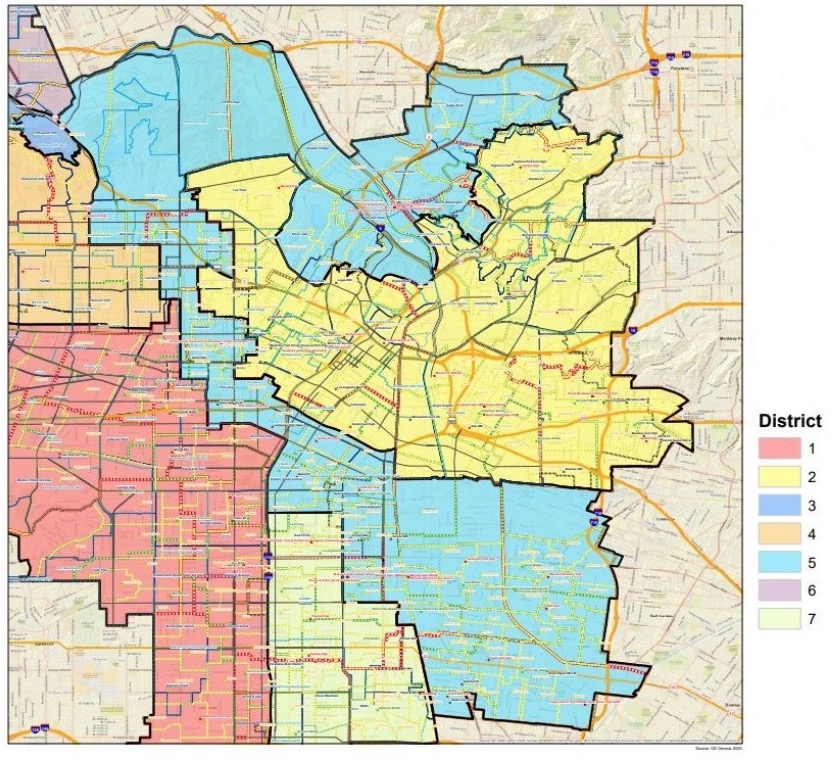 As chair of the Redistricting Commission, Sanchez introduced a last-minute change to the proposed map that made drastic changes to the boundaries of Board Districts 2 and 5. These new maps were heavily gerrymandered, completely surrounding District 2 with District 5. Areas that have historically not supported the Jose Huizar/Monica Garcia regime were transferred to District 5. This move was supported by multiple calls made during the public comment period from people identifying themselves as members of InnerCity Struggle.