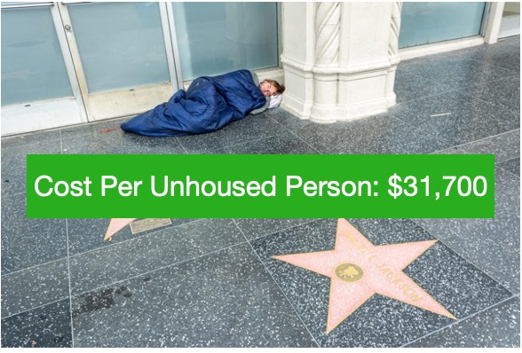 $31,700 per person is probably a very low estimate. If you add in 60 percent ($507 million) of LAHSA’s budget, and then deduct the City’s share of $38,000,000, the total becomes $1.83 billion, or $44,650 per person, which is 113 percent of the average individual income. Even that number is probably low, because it excludes expenditures by non-profits that aren’t funded by the City or LAHSA, nor costs that simply get lost in the bureaucracy.