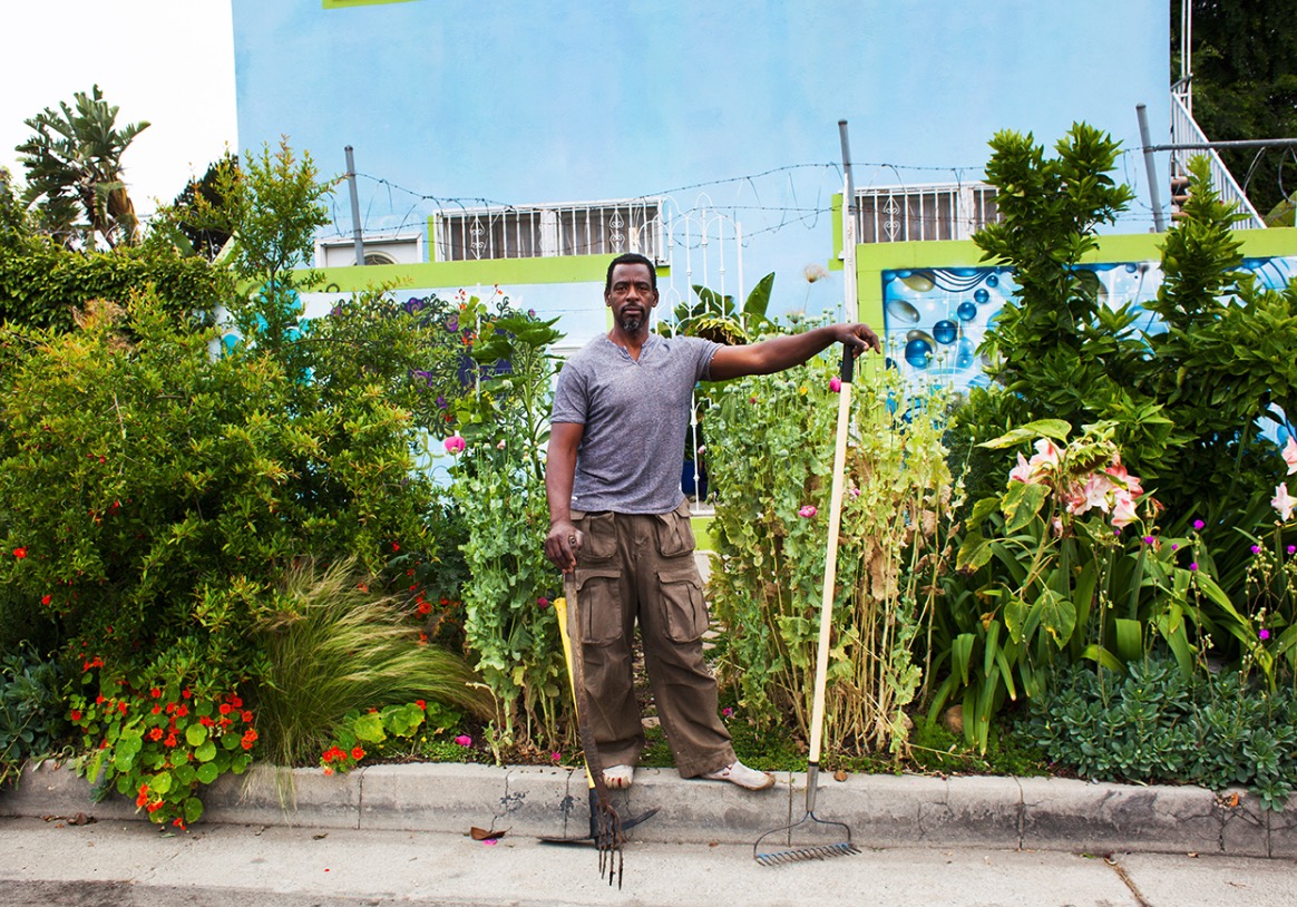 These days, I’m focusing on raising funds for the Ron Finley Project, a plan to acquire an acre of land in South Central L.A. behind the city’s oldest operating library and turn it into an urban garden oasis. When it’s done, the Vermont Square library garden will consist of a greenhouse, a café in a shipping container, and a community garden where people can grow, exchange, and sell their food at a bi-weekly food stand. We’ll also offer gardening and art classes and a program to use the thousands of pounds of fruit from people’s yards that go to waste each year. We want to use the fruit in the café and donate it to shelters. We want to teach people how to turn that fruit into income—to make preserves and other items. The idea is to help people become self-sustaining and healthy at the same time.