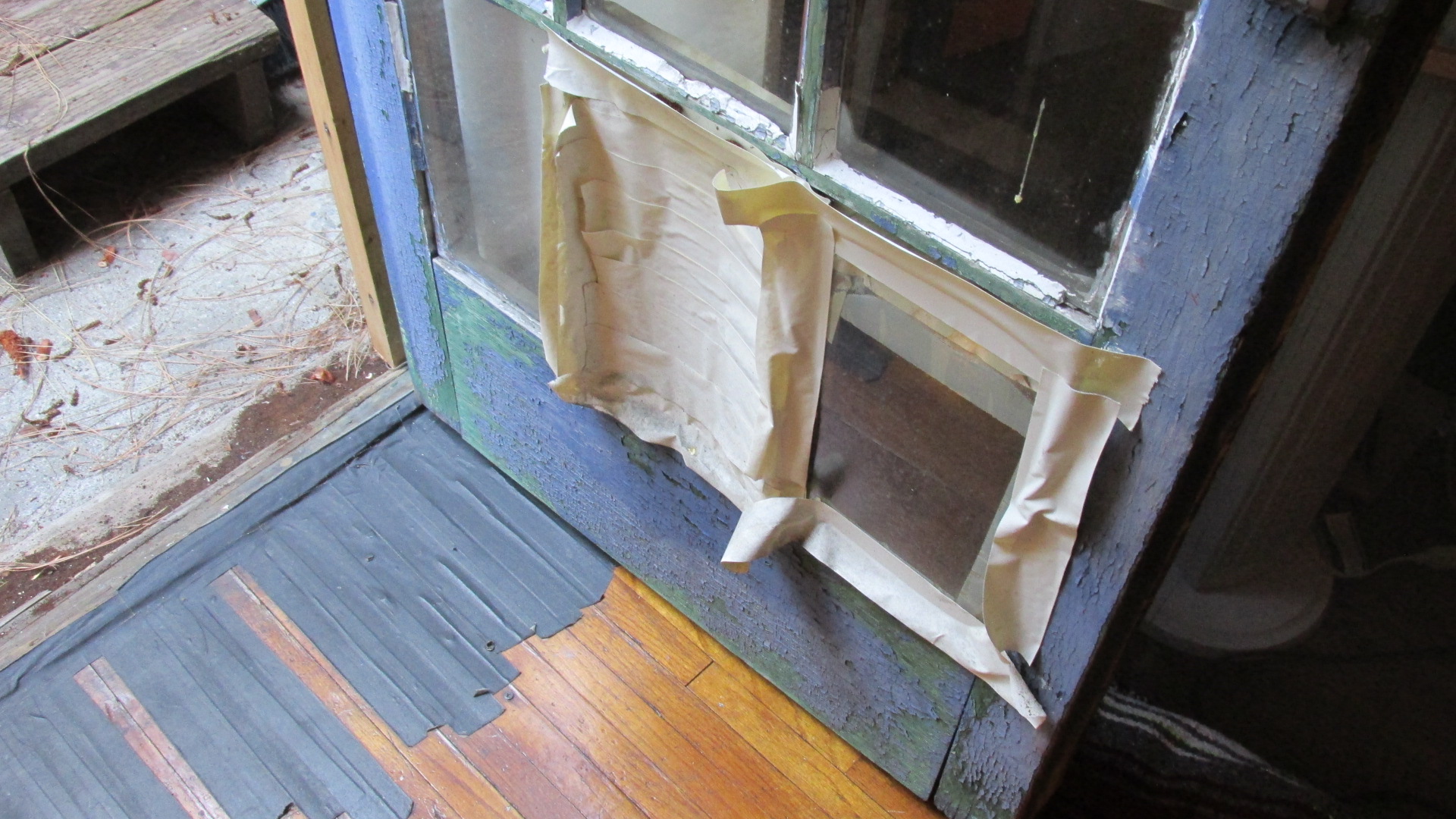 Last week I went to visit Mary and another tenant. The other tenant asked that their name not be used due to the state of things with the owner. They invited me into their apartments, where I observed sketchy electrical work, crumbling weatherproofing, a missing windowpane, floors taped to keep out drafts and insects, and one place where the floorboards were rotting. I didn’t check for smoke detectors, but aside from that, it didn’t look like the violations cited in LAHD’s February notice had been addressed. Eight months later, the tenants are still dealing with the same problems.