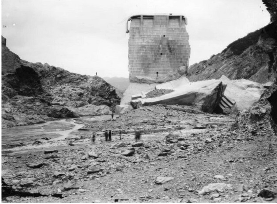 Investigators determined the dam was built on porous rock that didn’t provide a proper foundation. Leaks that started almost as soon as the dam’s reservoir began filling were dismissed as “natural and expected seepage.” City engineers made superficial improvements to control leakage, including piping some of the water for use at the dam keeper’s house. While experts disregarded signs of impending failure, water was eroding the dam’s anchorage to the canyon walls and undermining its footings. Eventually, the weight of billions of gallons of water was too much, and the dam collapsed in on itself, sending a huge wave of water, concrete, mud, and bodies down the Santa Clara River channel, racing toward the ocean 54 miles away. Among the dead were many migrant and transient laborers at farms and construction sites in the flood path who were never identified.