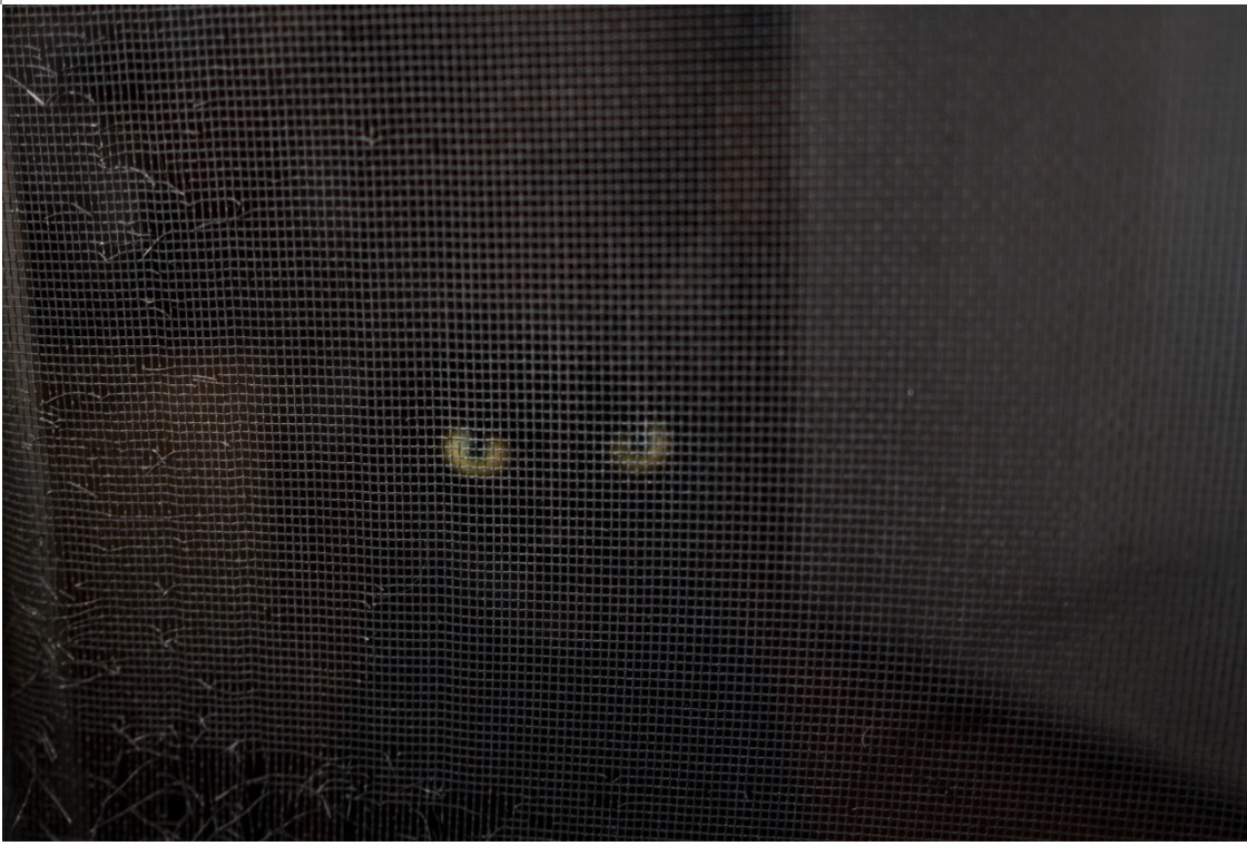 Muriel the cat gazes out the front door of Erickson’s Playa Del Rey apartment.