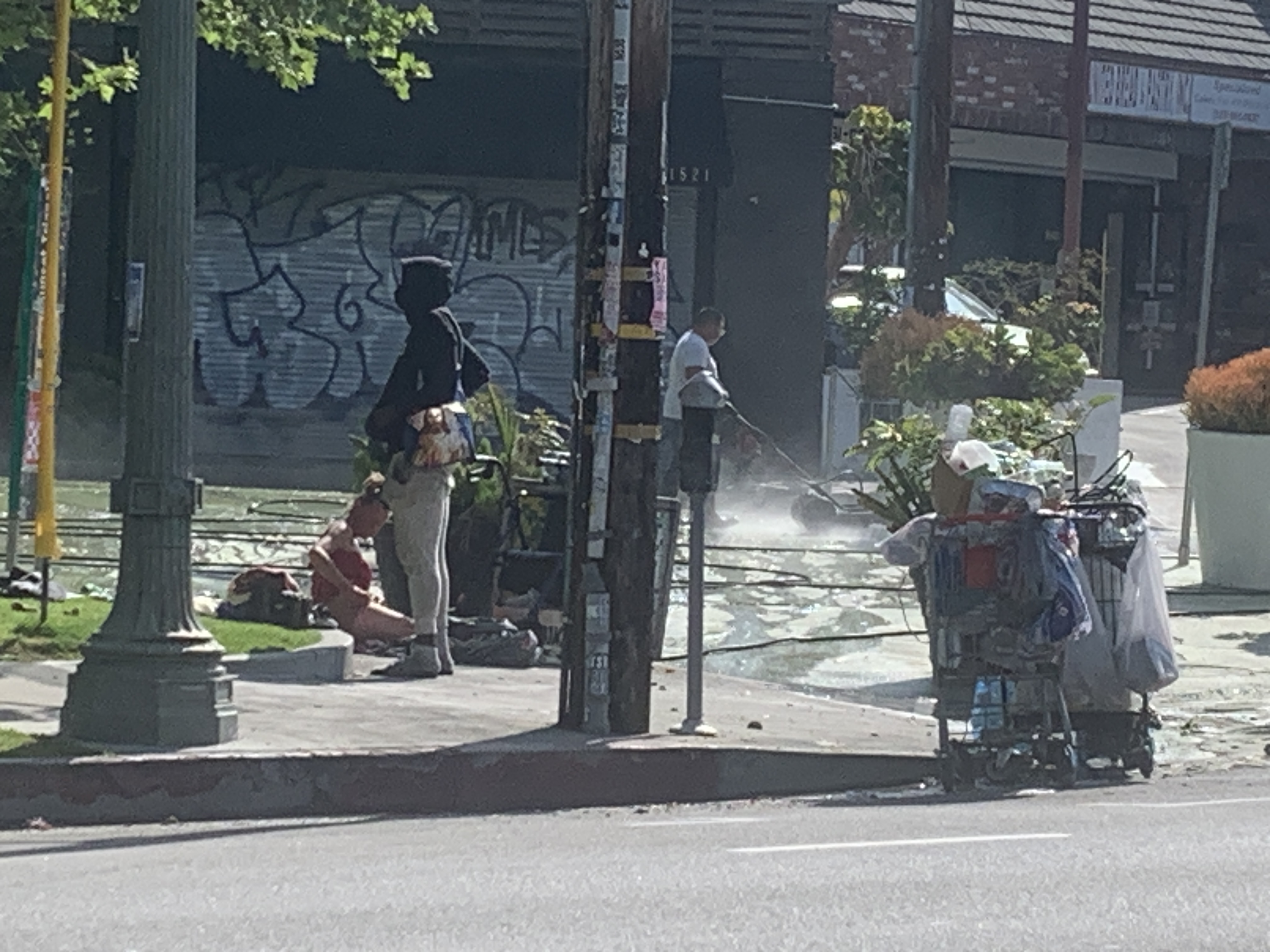 Homeless woman with walker camps out for days at Sunset Blvd/Edgecliff Dr. in CD13, photo taken by CA on 5/9/24