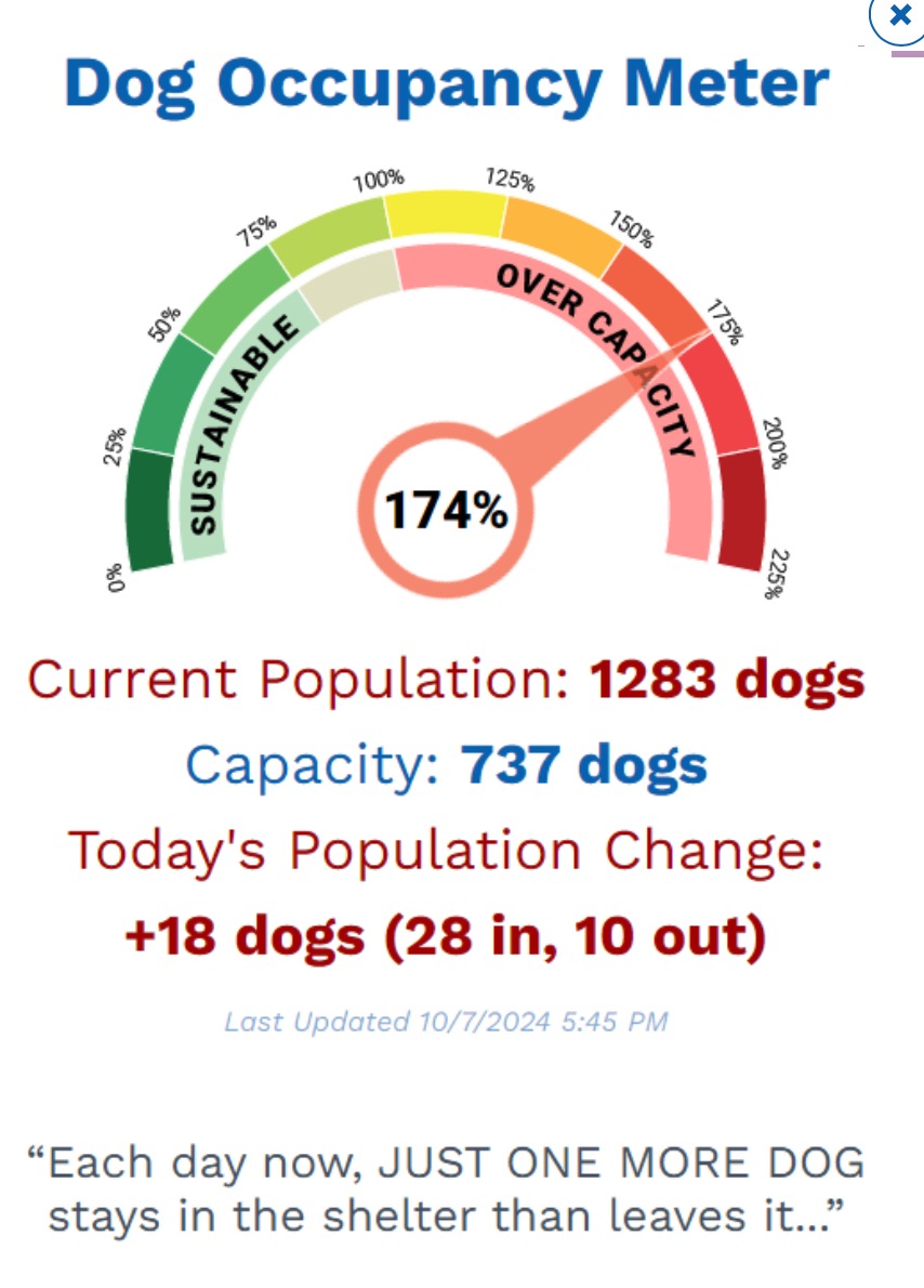 Finally, I'll leave City Controller Mejia, who holds himself out as loving dogs, in particular (I prefer older cats), with this graphic that you run into when you visit the Animal Services Department website. It's the “Dog Occupancy Meter” (I'm wondering why they don't give equal treatment to kittens and cats), which shows that the City's Animal “shelters” are severely Over Capacity when it comes to dogs. Something for Mejia to think long and hard about.