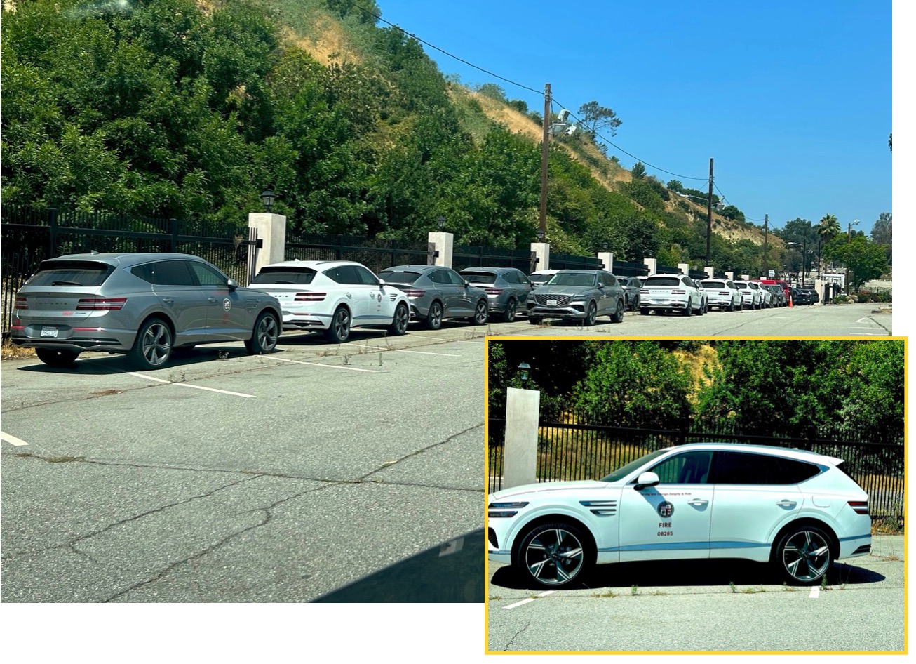 But as a long time resident of the City of Angels, a city I love, I could not help notice this: a line of at least 30 luxury (Genesis GV 70) SUVs in the Fire Dept. Training Center in Elysian Park. I pass by there daily on my way to downtown.