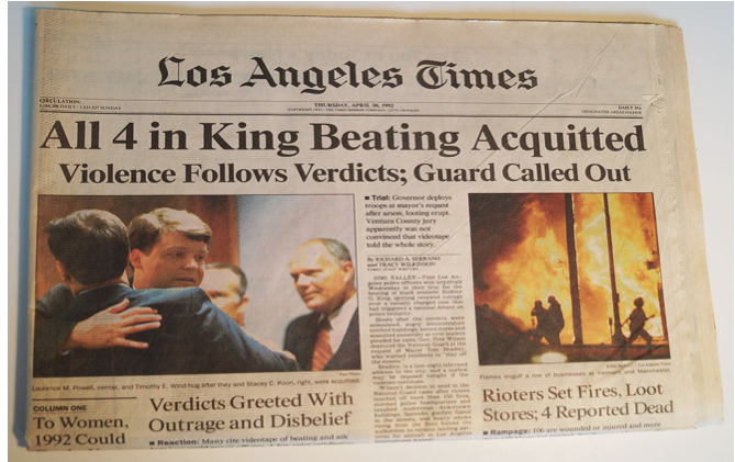 Stage 3 appeared on Saturday, after most of the political protests and high intensity “discount shopping” subsided. At this point, organized crime joined the fray, targeting specific stores, such as Samy’s Camera, which was then located on Beverly Boulevard near LaBrea. At the camera store men armed with automatic weapons held neighbors at bay while they shot the locks off of the door.
