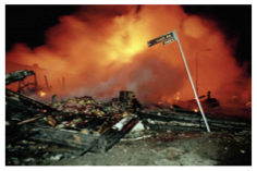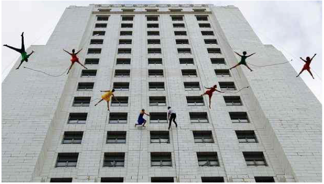 A man in an InfoWars T-shirt stands on top of a dumpster and gyrates to the antifa's music. A comrade dancing with him wields a Pepsi can.