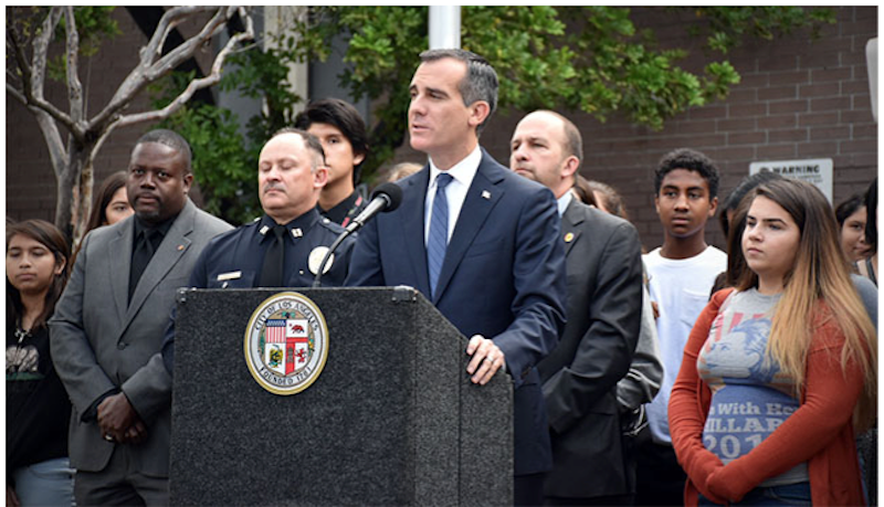 She also announced that the City is implementing a “pilot program” with this new policy at the Chesterfield Square shelter in South Los Angeles. If it is successful, in three months it will be extended to all city shelters.