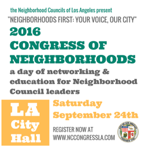 Describing the Congress, Cleghorn says, “The Congress is a once a year opportunity for Neighborhood Councils across the City to come together at City Hall for a day of education and communication for the entire NC System. It is an opportunity to speak one on one with our city's elected officials, department officials and each other. Also, to take advantage of a wealth of specialty workshops created by and for Neighborhood Council leaders. This year’s Congress seeks to advance the Neighborhood Councils’ advisory power needed for the enhancement and/or preservation of our communities.”