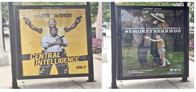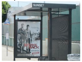 Ads for movies and TV shows with the firing or brandishing of guns are a staple of street furniture and billboard advertising, and often show up near schools, playgrounds, and other places where young people congregate. A few years ago, one showing a sniper firing a rifle appeared on a billboard directly across the street from a Westchester elementary school, and another depicting an actor waving a gun was placed in a bus shelter in front of Venice High School, just steps from where a student was shot and killed the year before.