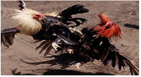 Cockfighting is not a "sport" in which the match ends when one rooster proves its superiority. The long, sharp blades attached to the feet assure that the cutting and stabbing will be lethal or produce serious injury to at least one of the fighters. The death or inability of a bird to continue brings cheers from bloodthirsty spectators as numerous bouts continue.