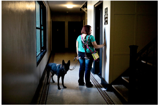 The emotional heart of the fight may belong to Alisha Wainwright, a tenant at Edinburgh who was evicted by Matthew Jacobs. “It started when I got an Ellis Act notification sometime last April,” said Alisha. “I attended my first neighborhood council meeting back in June just to see what they were planning on doing with the building and, when I did, I was really disappointed. Not only did it not reflect the neighborhood aesthetic, but the community didn’t like it. So I spoke about my personal experience, as I do whenever I get a chance to speak about the beauty and simplicity and charm and history that I felt in that apartment. My favorite features of my Edinburgh apartment were the beautiful mantel with unique tile motifs and the original paned windows that let in a lot of natural light.