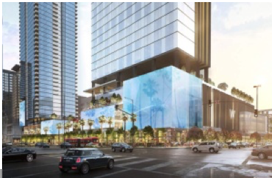 CommentsNEIGHBORHOOD POLITICS—Check out the graphic at the top of this article. This is what we will be seeing at Olympic and Figueroa when the new hotel-residential-commercial project is built there, probably in 2022.