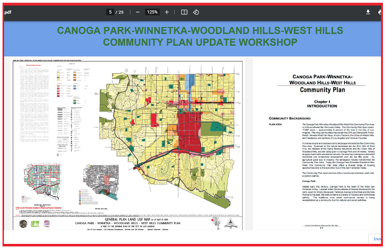 I was able to watch a video on the Southwest Community Plan Update geared specifically to the “Canoga Park – Winnetka – Woodland Hills – West Hills Community Plan.” You can find it here: https://lacity.webdamdb.com/embedvid.php?embedAssetId=okiEpNj7xaf1&apm=0