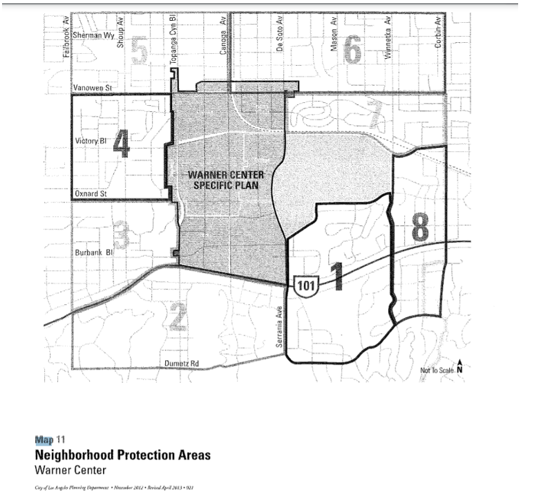West Hills is represented in part in Areas 4 and 5 of this Neighborhood Protection Area map. Canoga Park is represented in parts of Areas 5 and 6; Winnetka, I believe, is represented in Area 6 of the NPP. I believe that areas 7, 8, 1, 2, and 3, and part of 4 would all be parts of Woodland Hills.