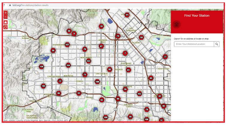 This is a Los Angeles Fire Station map that is interactive that I zoomed to show most of the stations in the West San Fernando Valley. That map can be found here: