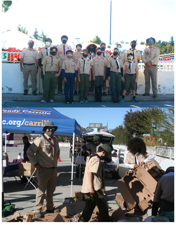 Third, I can’t say enough about our Boy Scout Troop #199 from St. Dominics. The scouts and their parents arrived early, sorted out all the food into boxes, and had everything ready in plenty of time before the families arrived at appointed times to get their food.