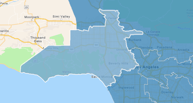 This District, while it does stop before reaching Santa Monica, it does include the “flatter parts of Beverly Hills and West Hollywood which I believe are more well suited with their neighbors along the Wilshire and Santa Monica Blvd corridors. I believe that the line should be drawn at Sunset to keep the hillside potential fire areas together in one Supervisorial District with the San Fernando Valley.
