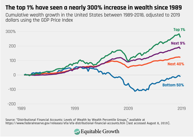 Second, according to Jacob Woocher in Knock-LA, the extraction of rent is a transmission belt of wealth from poor neighborhoods to well-off ones. More particularly, he identifies major Los Angeles landlords whose incomes originate in low income neighborhoods far from where they live. As a result of both rent and wage-gouging, economic inequality in the United States is now similar to that of the Gilded Age (1870-1900).