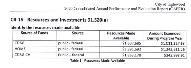 CommentsSOUTH OF THE 10 - The U.S. Department of Housing and Urban Development returned the city of Inglewood’s 2020 Consolidated Annual Performance Evaluation Report (CAPER) because the City needed to make revisions before it would be accepted.