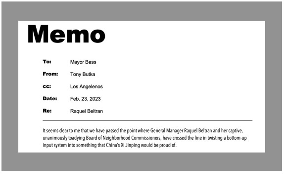 Recently our Bob Gelfand has written a couple of damning CityWatchLA articles delineating how Beltran’s DONE has finally morphed into an authoritarian top down ‘Momma knows best’ perversion of the actual Neighborhood Council system.