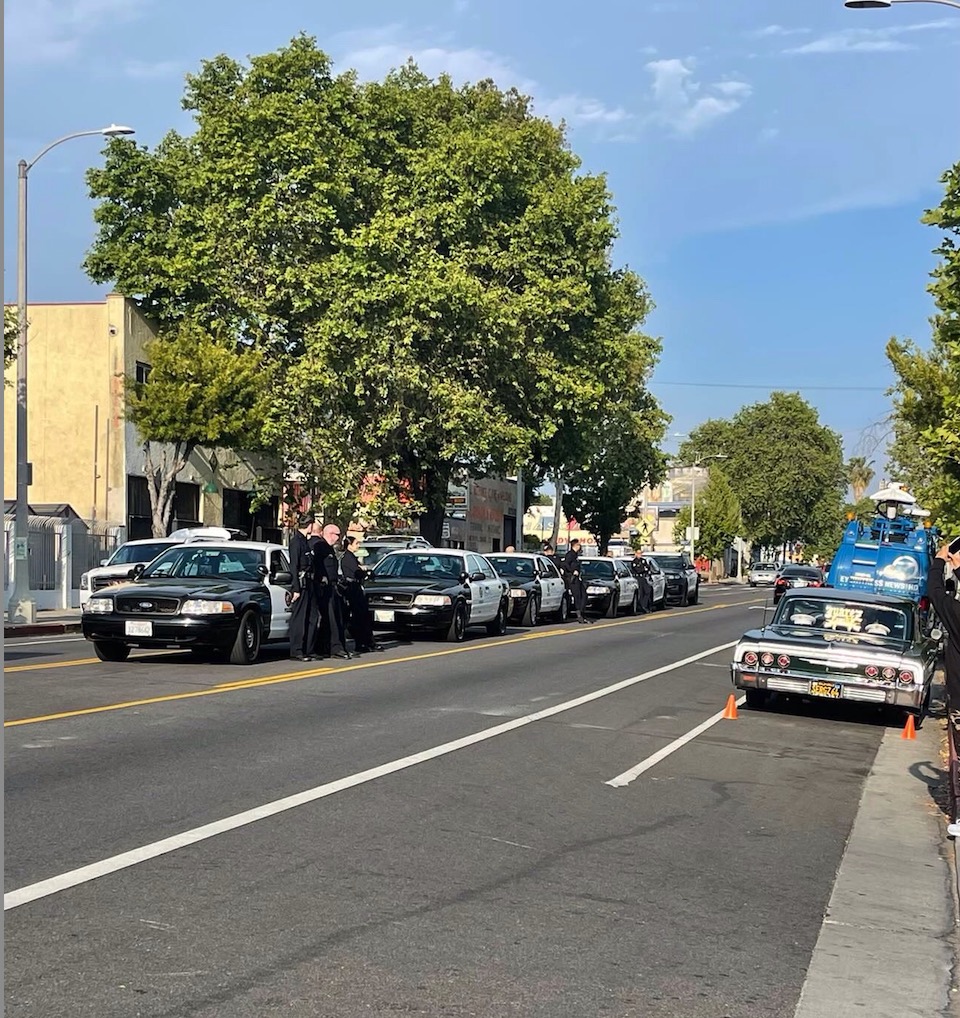 In the photo, you can see the LAPD marked vehicles blocking the medium area of York Blvd with 8-12 uniformed police officers ( most assigned to a special unit assigned to Northeast Division ( not your Senior Lead officers assigned to Northeast Division who should have been out there) all standing around together most playing with their cell phones.
