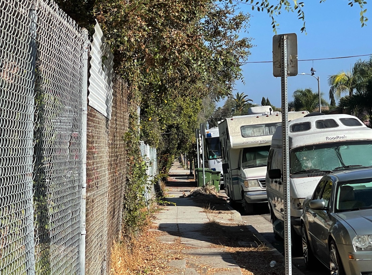 While most clustered RV’s and campers are found on main corridors such as Washington, Lincoln or Venice Boulevards, here is an example of when a property appears vacant or unkept, these transient encampments have a tendency to explode and become attached to a specific neighborhood.